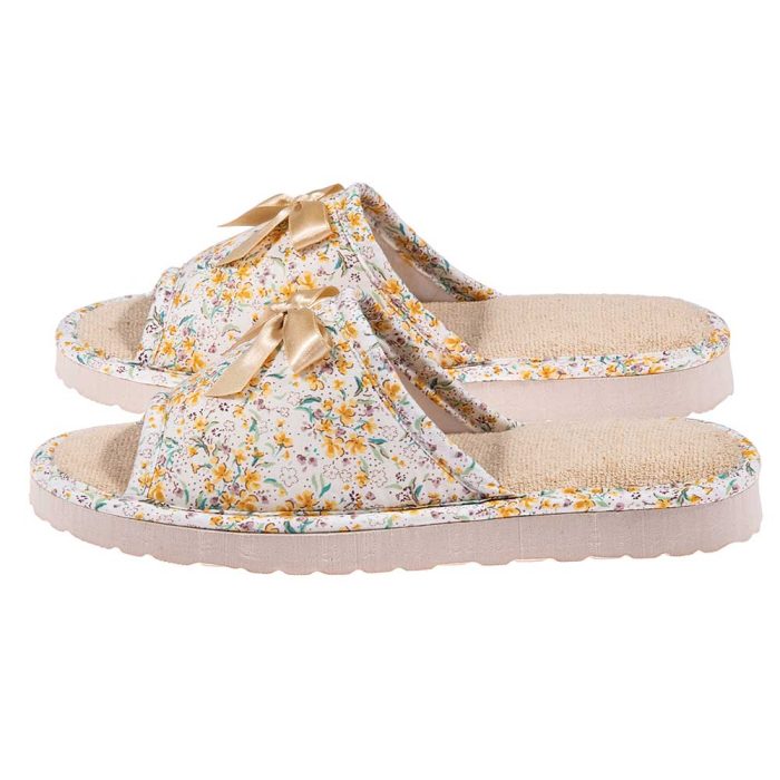 Απολαύστε τη δροσερή άνεση που προσφέρουν οι χειροποίητες, ανοιχτές παντόφλες της Amaryllis Slippers. Αυτό το πανέμορφο κίτρινο floral σχέδιο με τον κομψό φιόγκο συνδυάζει τη θηλυκότητα με την προηγμένη τεχνολογία άνεσης, αποτελώντας την ιδανική επιλογή για όσες αναζητούν ένα ποιοτικό και ανατομικό προϊόν που επιτρέπει στα πόδια να “αναπνέουν”.