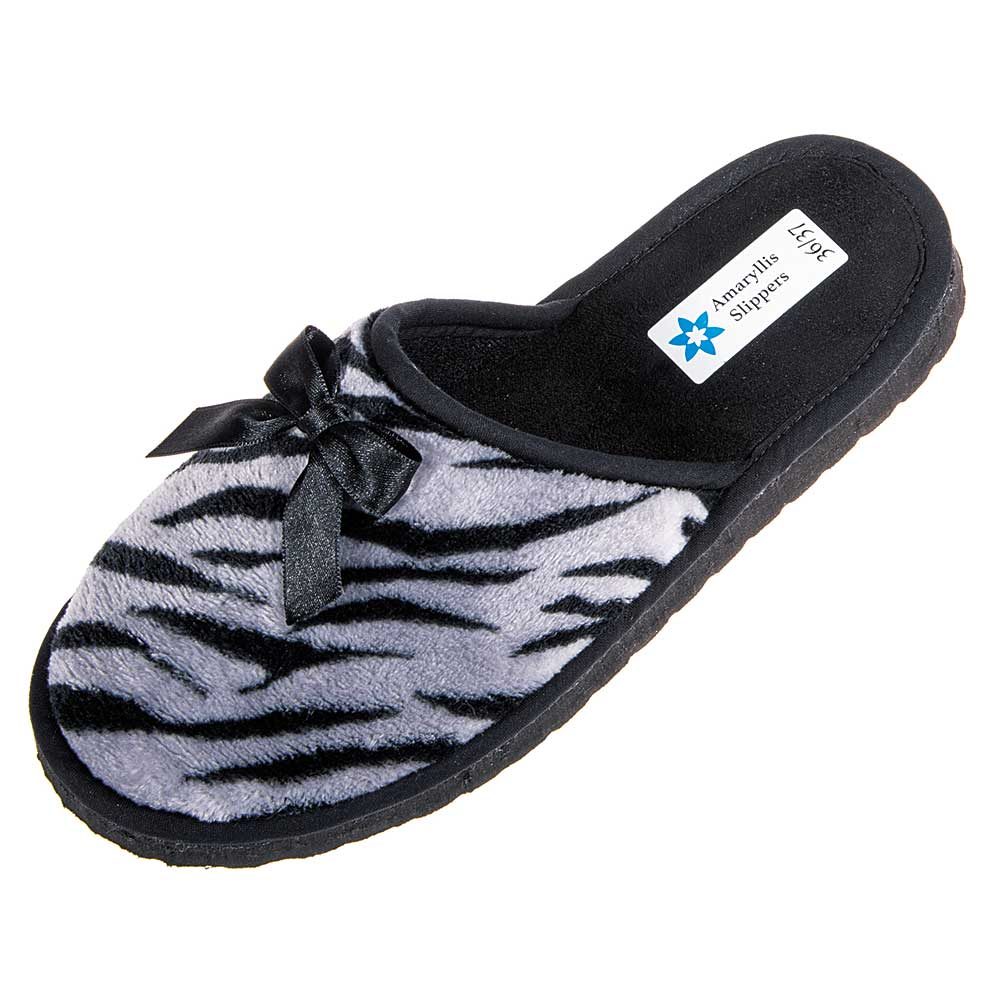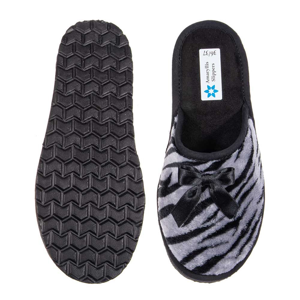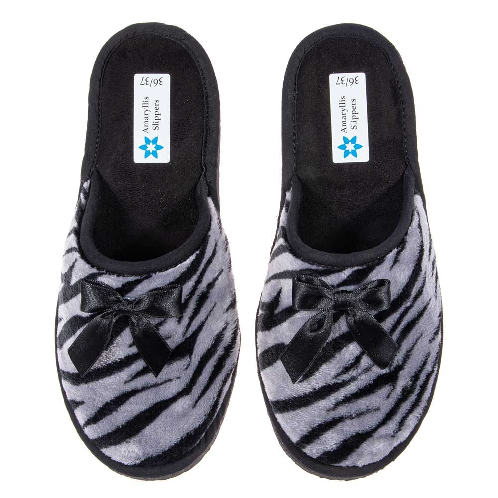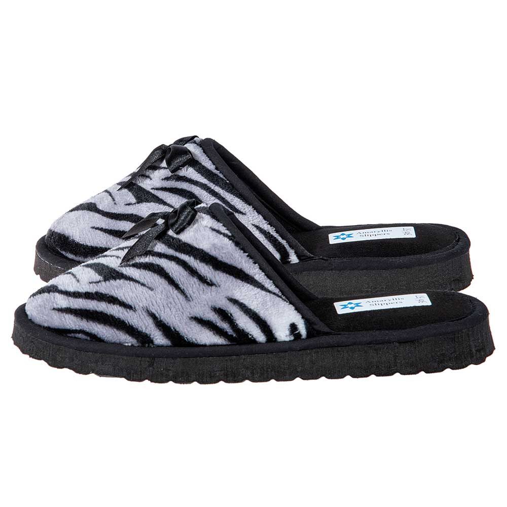Οι γυναικείες παντόφλες Amaryllis Slippers συνδυάζουν ζεστασιά, άνεση και στυλ, ιδανικές για όλες τις ώρες μέσα στο σπίτι. Το εξωτερικό τους είναι κατασκευασμένο από απαλό fleece ύφασμα με εντυπωσιακό σχέδιο zebra και διακριτικό σατέν φιόγκο που χαρίζει μια θηλυκή και κομψή πινελιά.
